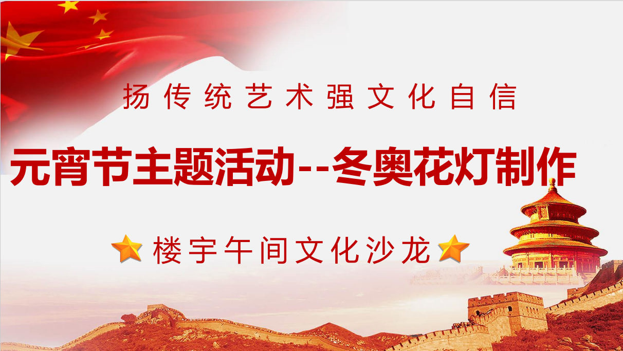 2022年2月,爲迎接元宵佳節,在節日中感受冬奧氛圍,讓傳統文化鮮活起(qǐ)來,依托街道(dào)樓宇黨建活動服務站,由阜貞公司第二黨支部、和平街街道(dào)黨工委和外經(jīng)貿安貞大樓非公企業租戶所組成(chéng)的外經(jīng)貿安貞大樓聯合黨支部,組織所屬青年黨員團員開(kāi)展“冬奧花燈、扮靓朝陽”元宵節主題活動,讓“午間課堂”更加生動起(qǐ)來。