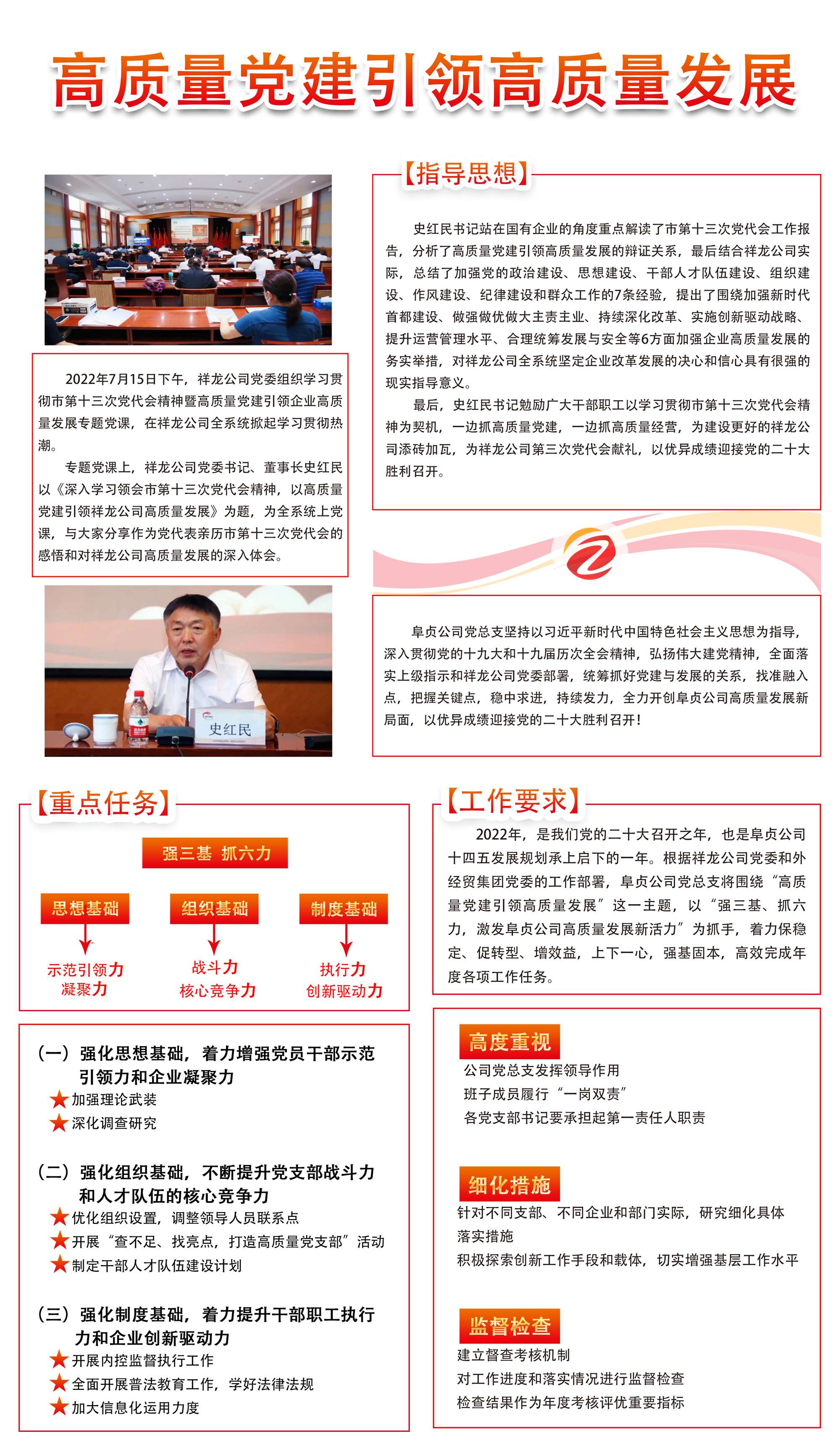 阜貞公司2022年黨建工作思路“強三基、抓六力,激發(fā)阜貞公司高質量發(fā)展新活力”