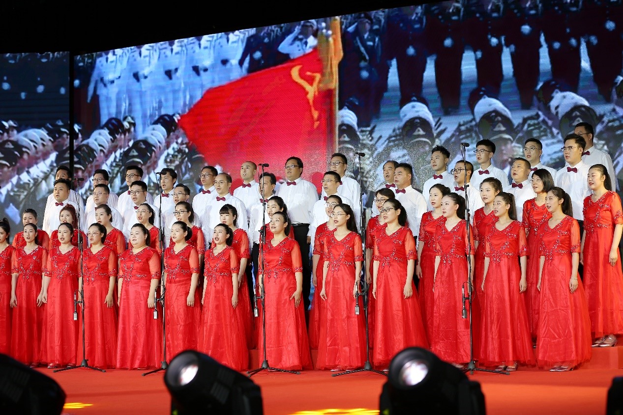 2023年6月30日,外經(jīng)貿集團領導班子與職工組成(chéng)的50人合唱團,參加祥龍公司“慶七一”歌詠比賽,參賽曲目爲《祖國(guó)不會忘記》《不忘初心》。大家用歌聲追憶曆史,用旋律歌頌祖國(guó),爲中國(guó)共産黨成(chéng)立102周年獻上頌歌、獻上祝福。