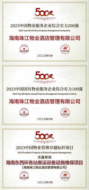 近日,克而瑞物管、中物研協在武漢國(guó)際博覽中心聯合發(fā)布《2023中國(guó)物業服務企業綜合實力研究報告》,同期揭曉2023年中國(guó)物業服務企業綜合實力500強及相關榜單。外經(jīng)貿集團實控企業海南珠江物業酒店管理有限公司(簡稱珠江物業公司),榮膺“2023中國(guó)物業服務企業綜合實力200強”,位列185名,較上年度提升了30個名次;同時還(hái)榮獲了“2023中國(guó)國(guó)有物業服務企業綜合實力100強”稱号,位列66名;在管的海南東西環各站客運設備設施維保項目榮獲“2023中國(guó)物業管理卓越标杆項目”稱号。