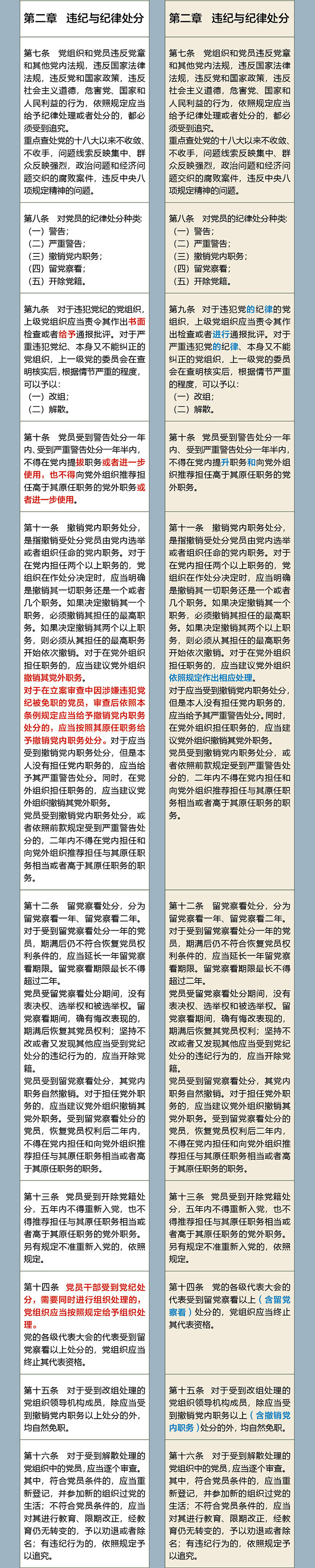 《中國(guó)共産黨紀律處分條例》修訂前後(hòu)對(duì)照表第一章、第二章